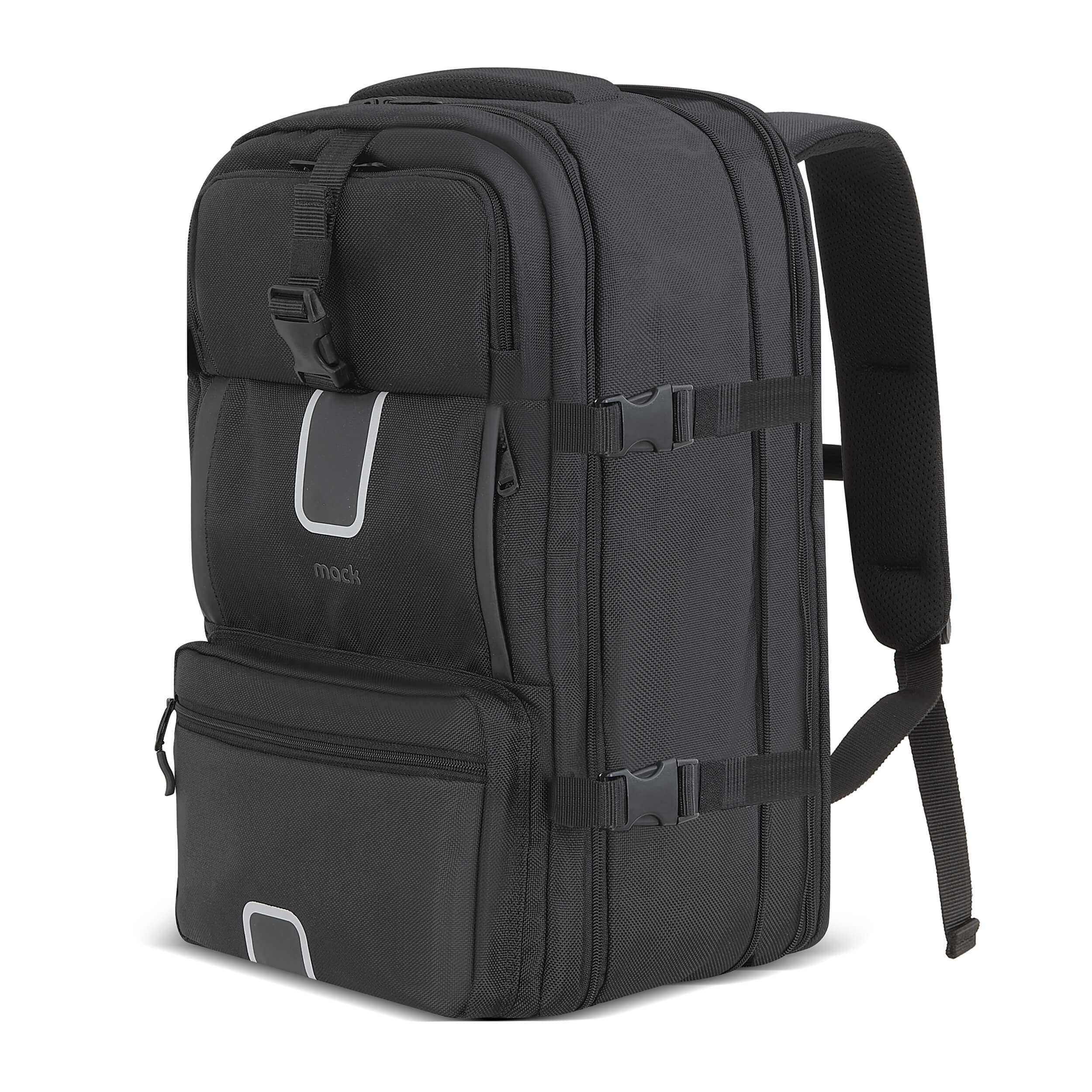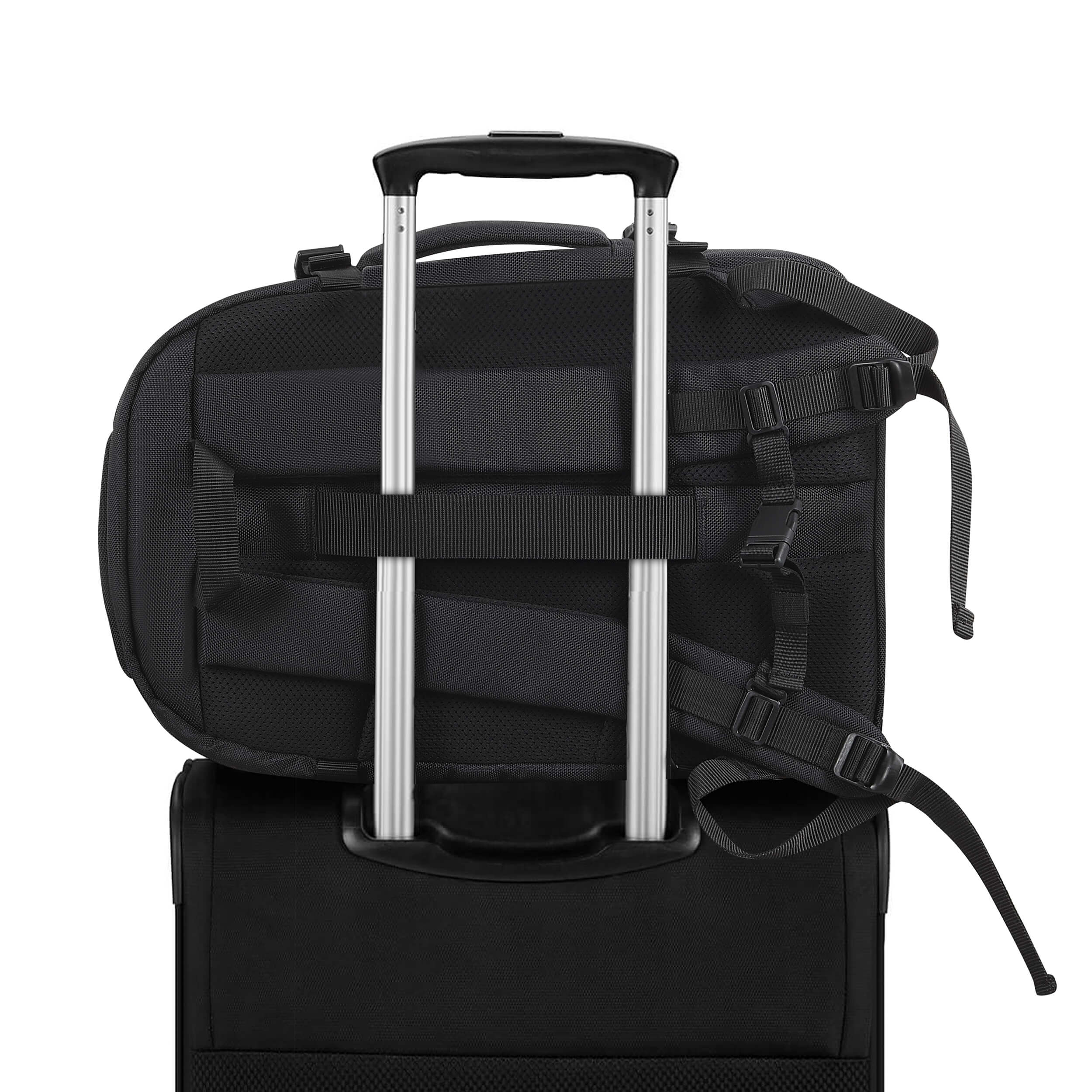 [Comfortable and Secure Carrying]: This cabin-sized travel bag features a padded back surface and shoulder straps for comfortable carrying. It also has an adjustable chest strap to alleviate weight from your shoulders and two handles, one on the top and one on the side, for versatile carrying options. The front reflector increases visibility in the dark, providing safe transport. Additionally, the luggage strap on the back allows you to secure your backpack to your suitcase, making it easy to carry while traveling.