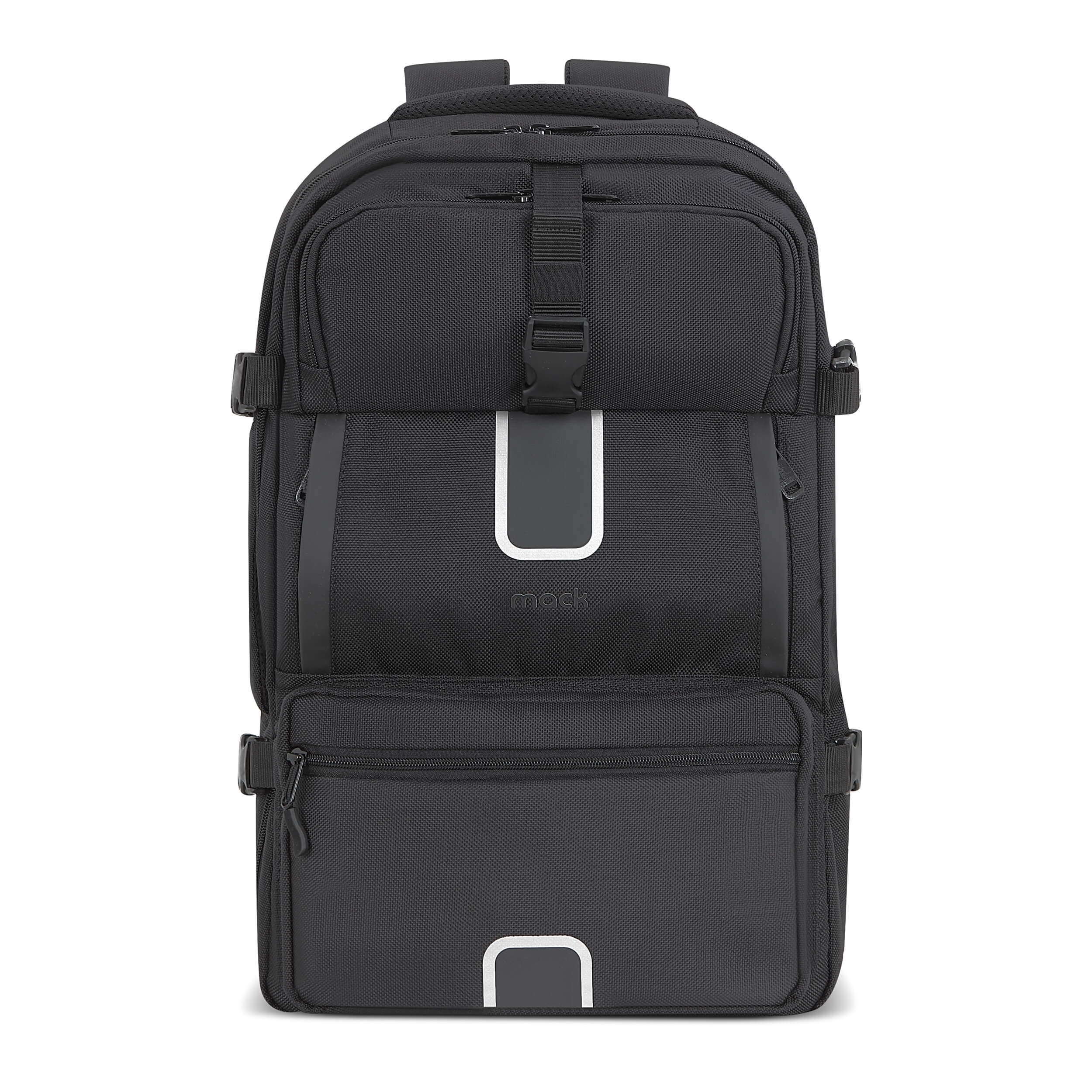 Explor Eco 32L Travel Backpack, 17.3-inch Laptop Backpack, Waterproof Cabin-Size Backpack, Eco-Friendly, Reflective Weekend Bag, Expandable Backpack, Black